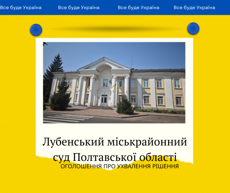 Лубенський міськрайонний суд Полтавської області повідомляє, що заочним рішенням судді Просіної Я.В. від 29 січня 2026 року по цивільній справі № 541/3586/25 позовні вимоги Товариства з обмеженою відповідальністю «Газопостачальна компанія «Нафтогаз України» про стягнення заборгованості за спожитий природний газ – задовольнити.