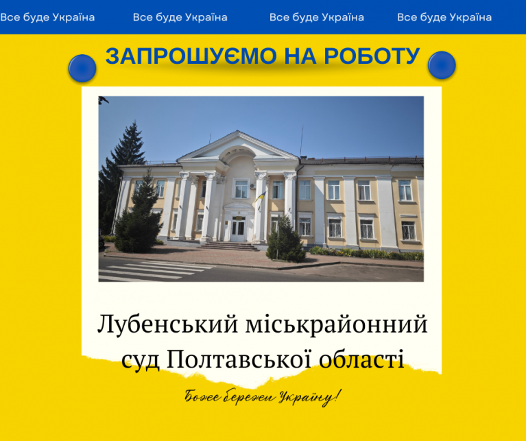 Подавайте резюме до Лубенського міськрайонного суду за адресою: м. Лубни, вул. Монастирська, 17